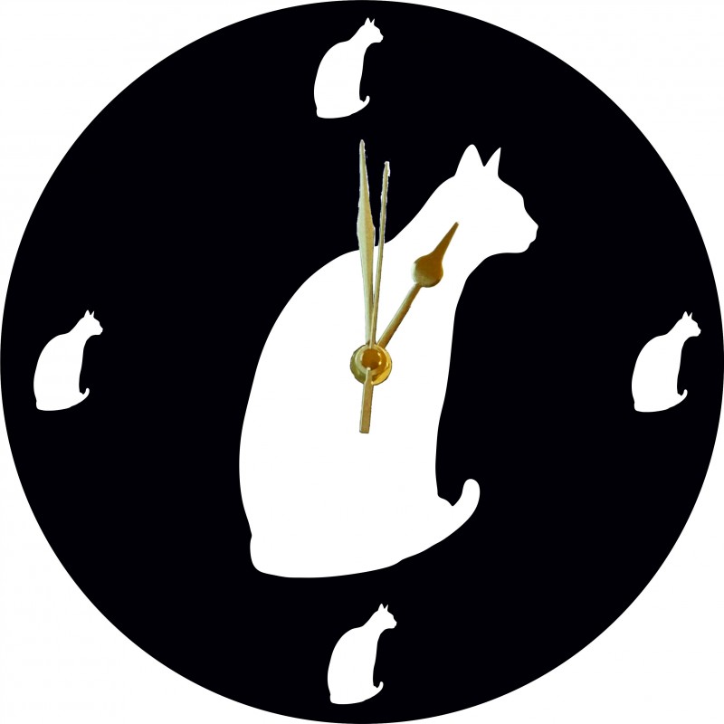 Acrylic clock with Abyssinian cut out and small Abyssinian cut-outs at 12, 3, 6 and 9. Available with a black background and white face or white background with black face. Each clock is 250mm diameter and 6mm thick. Lovely unique item ideal for any home or a gift. Each item comes with a protective film that needs to be removed before use.