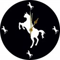 Acrylic clock with Horse cut out and small Horse cut-outs at 12, 3, 6 and 9. Available with a black background and white face or white background with black face. Each clock is 250mm diameter and 6mm thick. Lovely unique item ideal for any home or a gift. Each item comes with a protective film that needs to be removed before use.