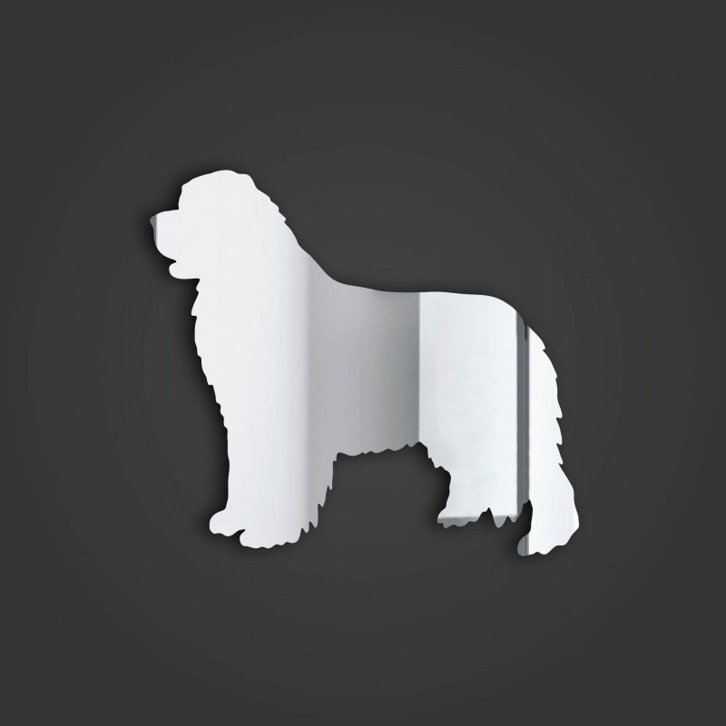 Wood and silver mirror acrylic Newfoundland windchime. There are two 60mm (6cm) wide dogs at the bottom and a 40mm (4cm) wide one at the top. All three dogs are mirrored on both sides. The moon at the top is 13cm wide and the total length is 57cm. Great item for the home or garden. Each dog on the windchime comes with a protective film which needs removing before use.