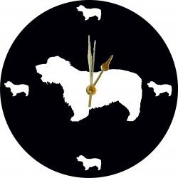 Acrylic clock with Dandie Dinmont Terrier cut out and small Dandie Dinmont Terrier cut-outs at 12, 3, 6 and 9. Available with a black background and white face or white background with black face. Each clock is 250mm diameter and 6mm thick. Lovely unique item ideal for any home or a gift. Each item comes with a protective film that needs to be removed...