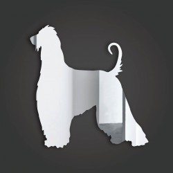 Dog show ring number clip. 40mm (4cm) mirror acrylic diameter back with an Afghan Hound on the front. Available in a variety of colours. Great item for any dog show.