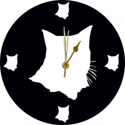 Acrylic clock with Tonkinese cut out and small Tonkinese cut-outs at 12, 3, 6 and 9. Available with a black background and white face or white background with black face. Each clock is 250mm diameter and 6mm thick. Lovely unique item ideal for any home or a gift. Each item comes with a protective film that needs to be removed before use.