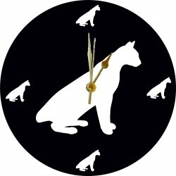 Acrylic clock with Asian cat cut out and small Asian cat cut-outs at 12, 3, 6 and 9. Available with a black background and white face or white background with black face. Each clock is 250mm diameter and 6mm thick. Lovely unique item ideal for any home or a gift. Each item comes with a protective film that needs to be removed before use.