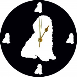 Acrylic clock with Labradoodle cut out and small Labradoodle cut-outs at 12, 3, 6 and 9. Available with a black background and white face or white background with black face. Each clock is 250mm diameter and 6mm thick. Lovely unique item ideal for any home or a gift. Each item comes with a protective film that needs to be removed before use.