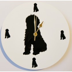 Acrylic clock with Labradoodle cut out and small Labradoodle cut-outs at 12, 3, 6 and 9. Available with a black background and white face or white background with black face. Each clock is 250mm diameter and 6mm thick. Lovely unique item ideal for any home or a gift. Each item comes with a protective film that needs to be removed before use.