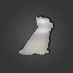 Dog show ring number clip. 40mm (4cm) mirror acrylic diameter back with a Yorkshire Terrier on the front. Available in a variety of colours. Great item for any dog show.