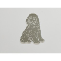 Dog show ring number clip. 40mm (4cm) mirror acrylic diameter back with a Labradoodle on the front. Available in a variety of colours. Great item for any dog show.
