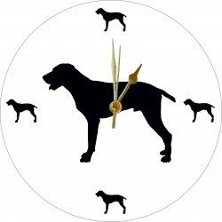 Acrylic clock with German Short Haired Pointer cut out and small German Short Haired Pointer cut-outs at 12, 3, 6 and 9. Available with a black background and white face or white background with black face. Each clock is 250mm diameter and 6mm thick. Lovely unique item ideal for any home or a gift. Each item comes with a protective film that needs to be...