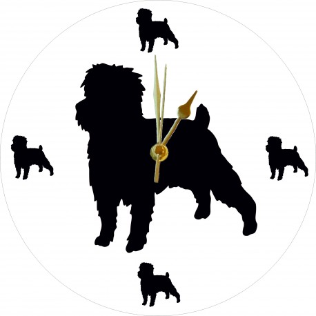 Acrylic clock with Affenpinscher cut out and small Affenpinscher cut-outs at 12, 3, 6 and 9. Available with a black background and white face or white background with black face. Each clock is 250mm diameter and 6mm thick. Lovely unique item ideal for any home or a gift. Each item comes with a protective film that needs to be removed before use.