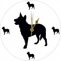 Acrylic clock with Australian Cattle Dog cut out and small Australian Cattle Dog cut-outs at 12, 3, 6 and 9. Available with a black background and white face or white background with black face. Each clock is 250mm diameter and 6mm thick. Lovely unique item ideal for any home or a gift. Each item comes with a protective film that needs to be removed before use.
