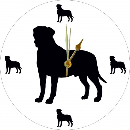 Acrylic clock with Bullmastiff cut out and small Bullmastiff cut-outs at 12, 3, 6 and 9. Available with a black background and white face or white background with black face. Each clock is 250mm diameter and 6mm thick. Lovely unique item ideal for any home or a gift. Each item comes with a protective film that needs to be removed before use.