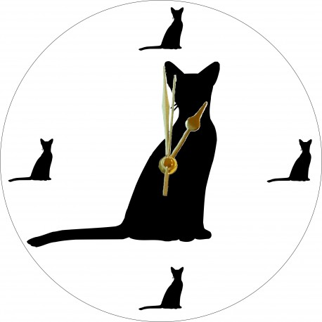 Acrylic clock with Abyssinian cut out and small Abyssinian cut-outs at 12, 3, 6 and 9. Available with a black background and white face or white background with black face. Each clock is 250mm diameter and 6mm thick. Lovely unique item ideal for any home or a gift. Each item comes with a protective film that needs to be removed before use.
