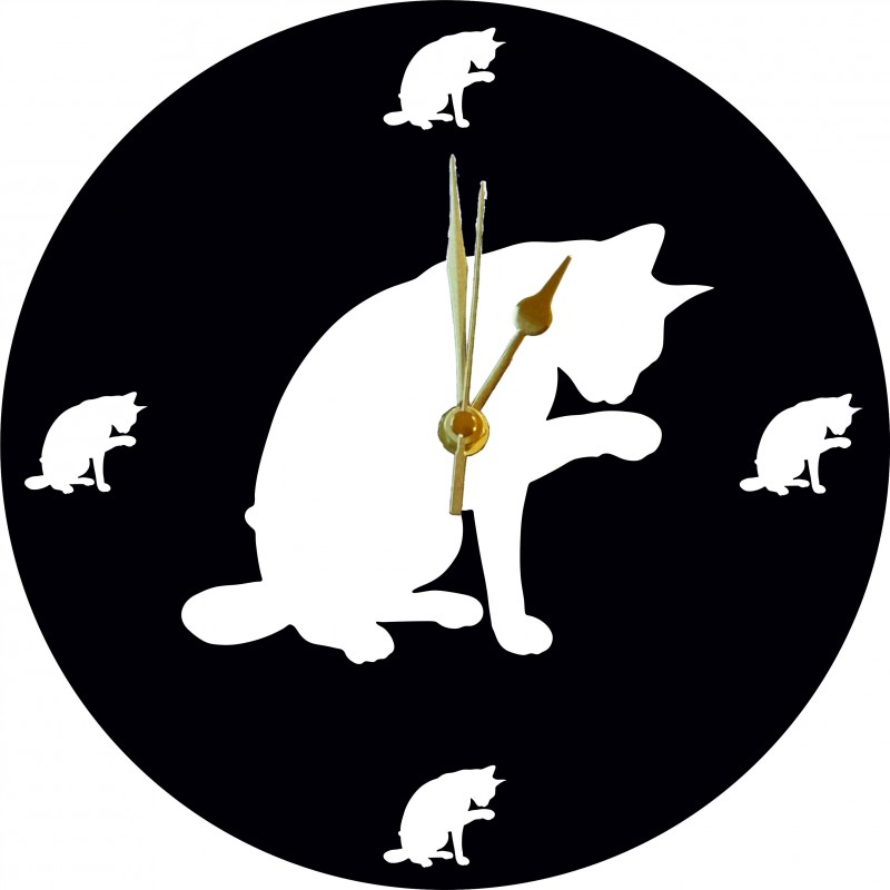 Acrylic clock with Abyssinian cut out and small Abyssinian cut-outs at 12, 3, 6 and 9. Available with a black background and white face or white background with black face. Each clock is 250mm diameter and 6mm thick. Lovely unique item ideal for any home or a gift. Each item comes with a protective film that needs to be removed before use.