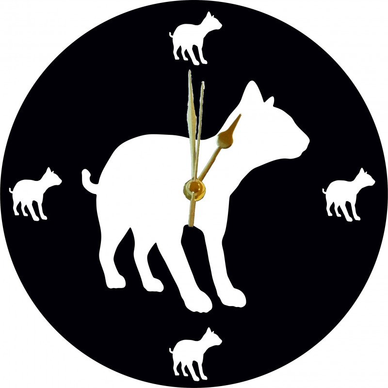 Acrylic clock with Siamese cut out and small Siamese cut-outs at 12, 3, 6 and 9. Available with a black background and white face or white background with black face. Each clock is 250mm diameter and 6mm thick. Lovely unique item ideal for any home or a gift. Each item comes with a protective film that needs to be removed before use.