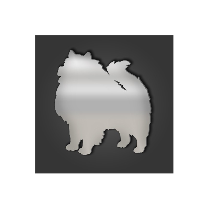 Dog show ring number clip. 40mm (4cm) mirror acrylic diameter back with a Keeshond on the front. Available in a variety of colours. Great item for any dog show.