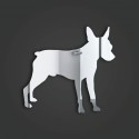 Dog show ring number clip. 40mm (4cm) mirror acrylic diameter back with a Miniature Pinscher on the front. Available in a variety of colours. Great item for any dog show.