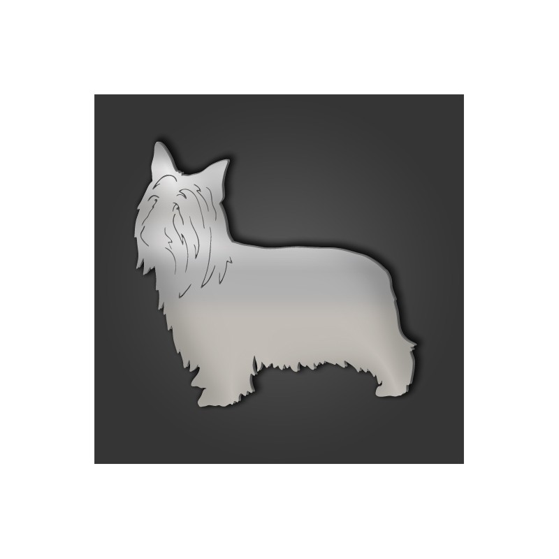 Dog show ring number clip. 40mm (4cm) mirror acrylic diameter back with a Silky Terrier on the front. Available in a variety of colours. Great item for any dog show.