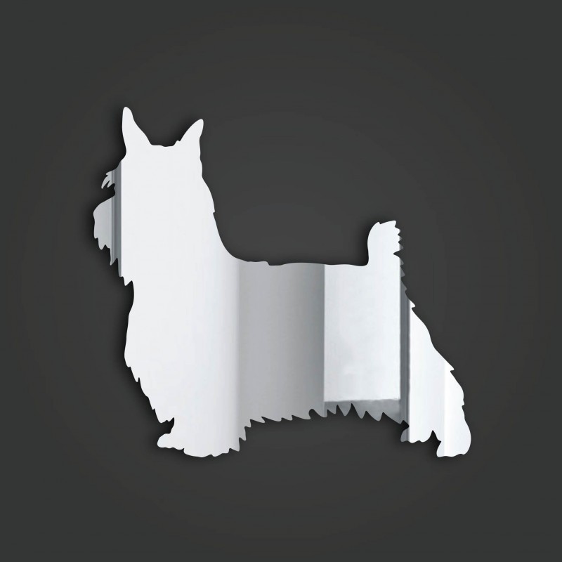 Dog show ring number clip. 40mm (4cm) mirror acrylic diameter back with a Silky Terrier on the front. Available in a variety of colours. Great item for any dog show.