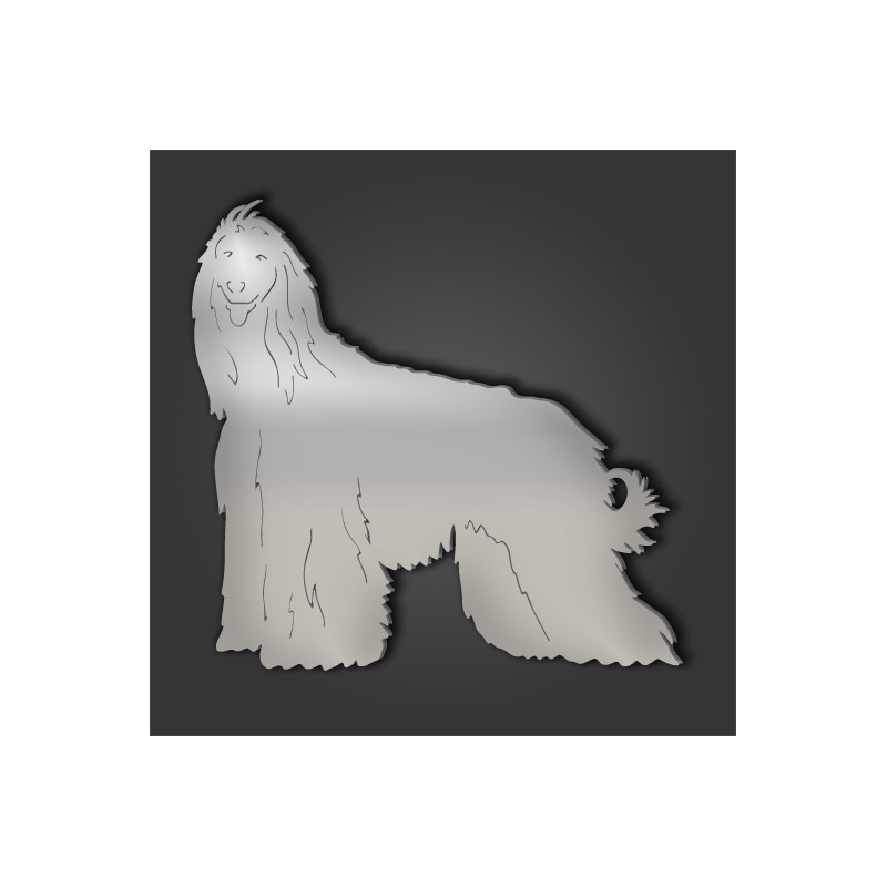 3mm thick black or white acrylic keyring, laser cut in the shape of an Afghan Hound. Shatterproof material which is lighter and 10 times stronger than glass. All the edges are laser polished. Each keyring is 6.5cm (65mm) wide.