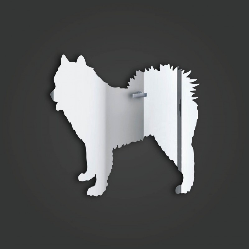 Wood and silver mirror acrylic Spitz windchime. There are two 60mm (6cm) wide dogs at the bottom and a 40mm (4cm) wide one at the top. All three dogs are mirrored on both sides. The moon at the top is 13cm wide and the total length is 57cm. Great item for the home or garden. Each dog on the windchime comes with a protective film which needs removing before use.