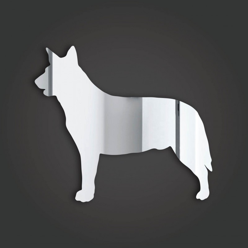 Wood and silver mirror acrylic Australian Cattle Dog windchime. There are two 60mm (6cm) wide dogs at the bottom and a 40mm (4cm) wide one at the top. All three dogs are mirrored on both sides. The moon at the top is 13cm wide and the total length is 57cm. Great item for the home or garden. Each dog on the windchime comes with a protective film which needs removing before use.
