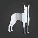 Wood and silver mirror acrylic Doberman windchime. There are two 60mm (6cm) wide dogs at the bottom and a 40mm (4cm) wide one at the top. All three dogs are mirrored on both sides. The moon at the top is 13cm wide and the total length is 57cm. Great item for the home or garden. Each dog on the windchime comes with a protective film which needs removing before use.